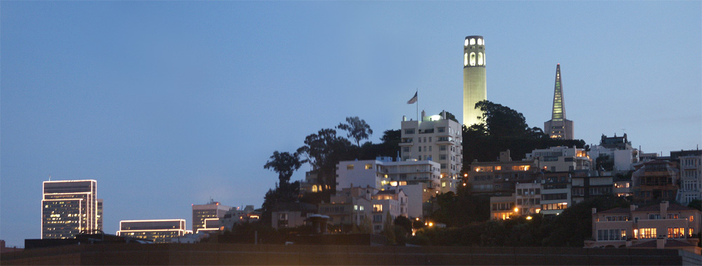 Coit Tower, Transamerica Pyramid at dusk